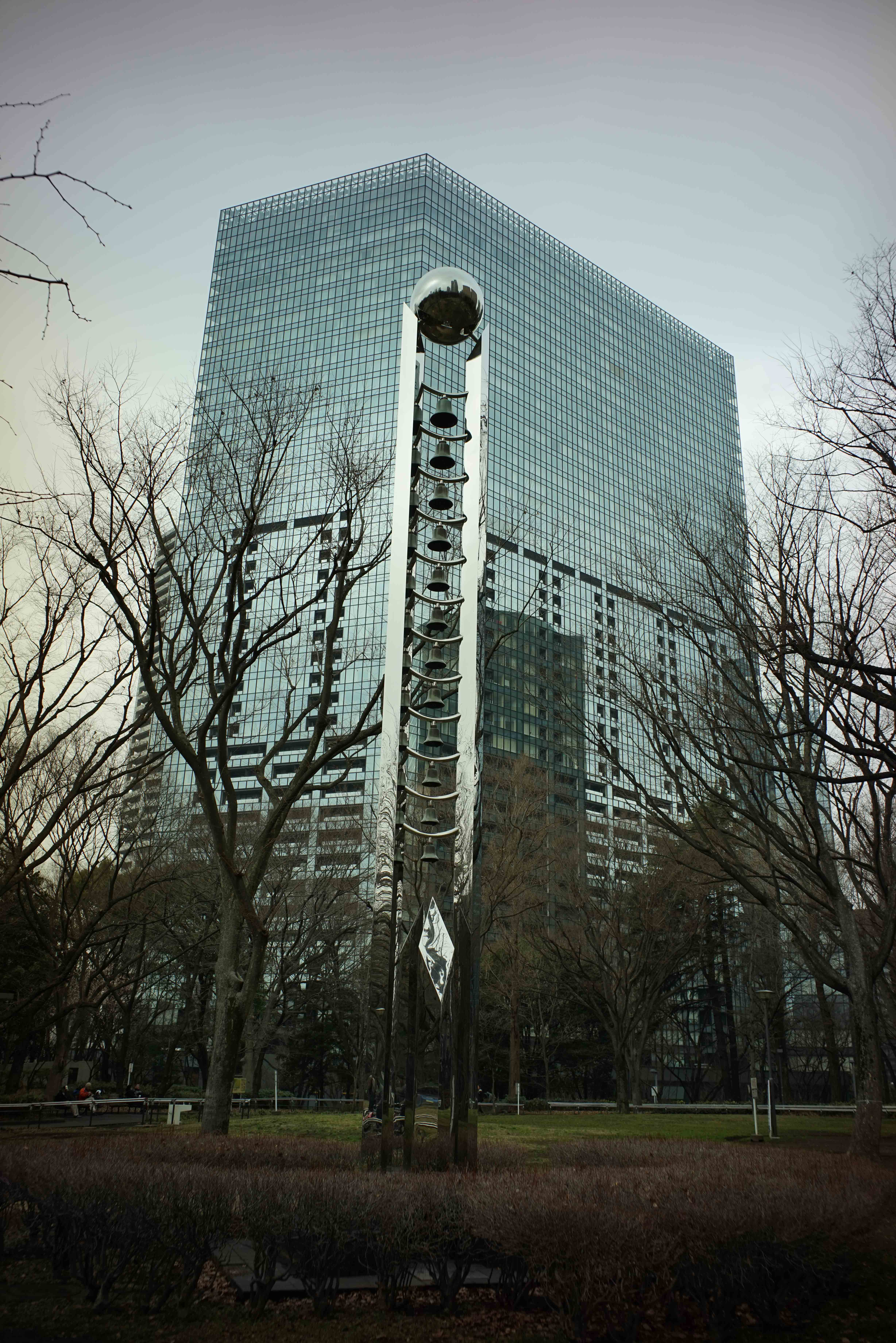 ちょっと前進して寄ると、こんな感じに手前のオブジェと背後のビルの高さが逆転します。