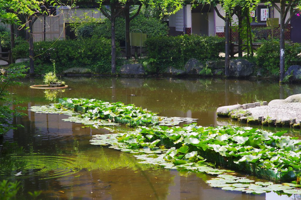 不忍池に行くと池一面を蓮の葉が覆っていました。