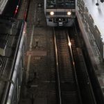 今回の作例写真は、AIサーボAFでの撮影なので約4.3コマ/秒の撮影で列車がホームに入ってくる約3秒間、全部で13コマの撮影をした内の最初の3コマ(上段)最後の3コマ(下段)ずつです。